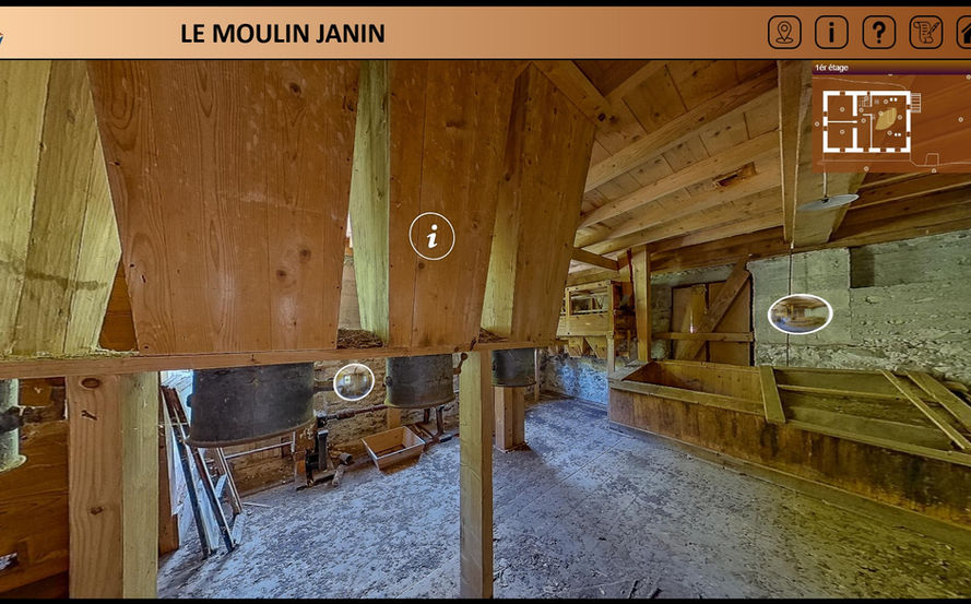Dans le cadre du projet pédagogique « Une école / un site : de l’eau au moulin », proposé par le Parc naturel régional du Massif des Bauges, une visite virtuelle du moulin Janin a été mise en place en complément des activités artistiques et de découverte de l’eau. Ce bâtiment, parmi les moulins les mieux conservés de Haute-Savoie, peut être exploré de deux manières : en visite libre, ou à travers un quiz interactif de 10 questions destiné aux petits comme aux grands.